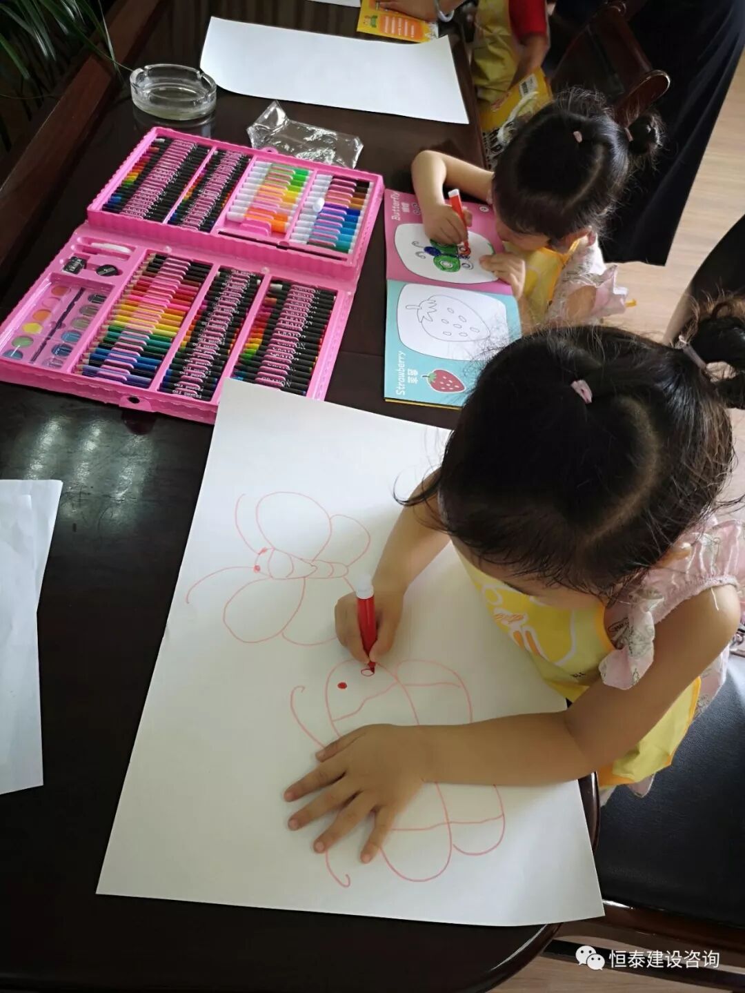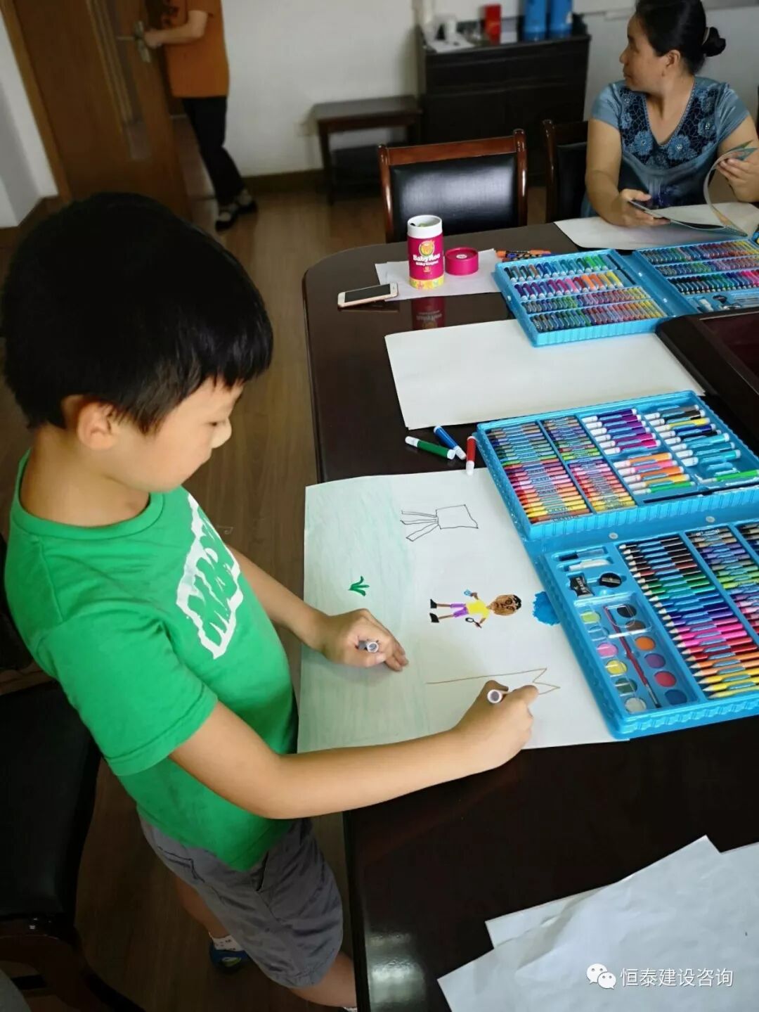 公司为开阔孩子视野,密切亲子感情,和谐家园关系,提升家庭幸福度,今日下午特举行“拿起小画笔,画出大梦想”江苏恒泰暑期亲子绘画活动,共12组家庭报名参加。小朋友们欢声笑语,充分激发自己的想象力,与家长们一起完成了一幅幅色彩鲜明、生动有趣的作品,接下来让我们一起来感受下活动现场以及欣赏一下孩子们的作品吧!